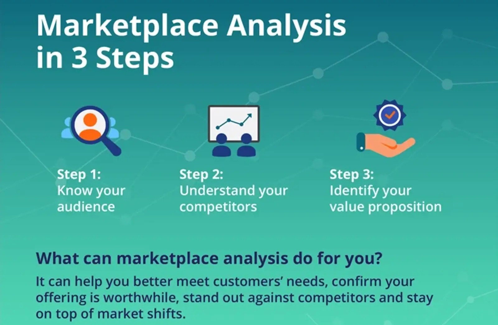 View this infographic to learn how a marketplace analysis can help grow your business by knowing your audience, understanding competitors and identifying your value proposition.